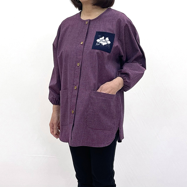 落ち着いた雰囲気の小さな格子の文人柄のスモックです。