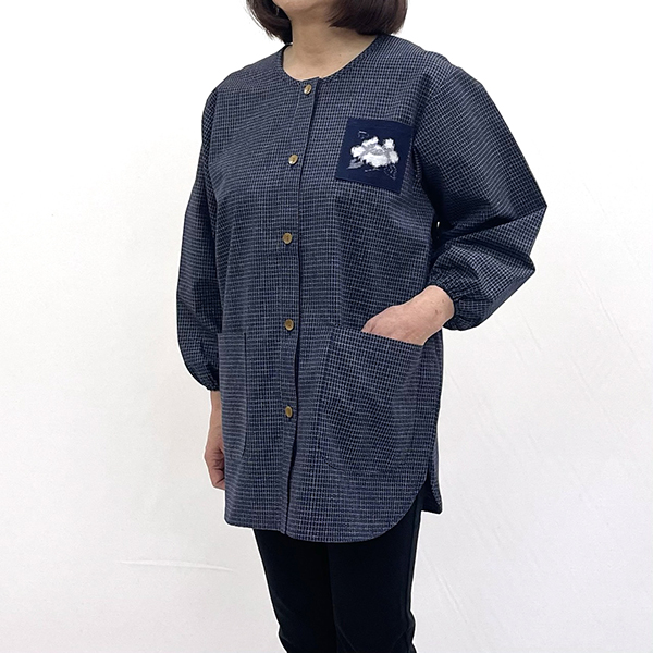 落ち着いた雰囲気の小さな格子の文人柄のスモックです。