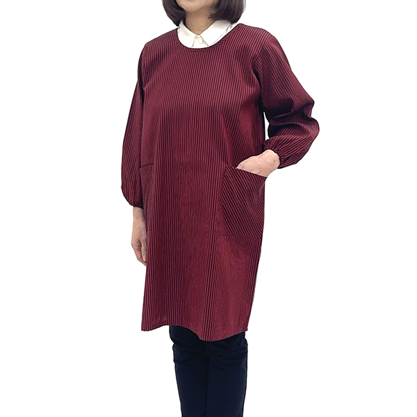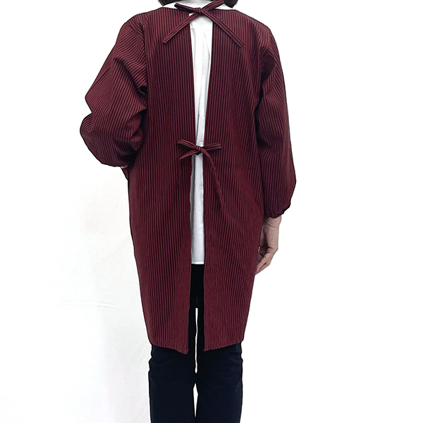 アクリル混の生地で作ったシワになりにくい、後ろ紐の割烹着です。
