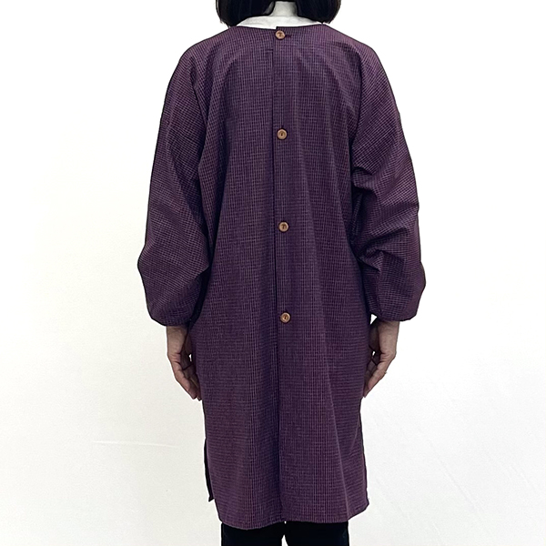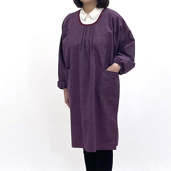文人柄に赤バイヤスのきいた、ロングタイプのゆったりタイプの割烹着です。