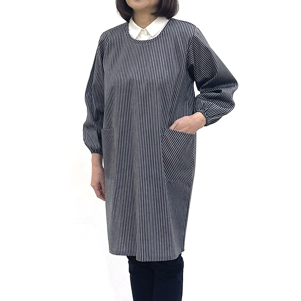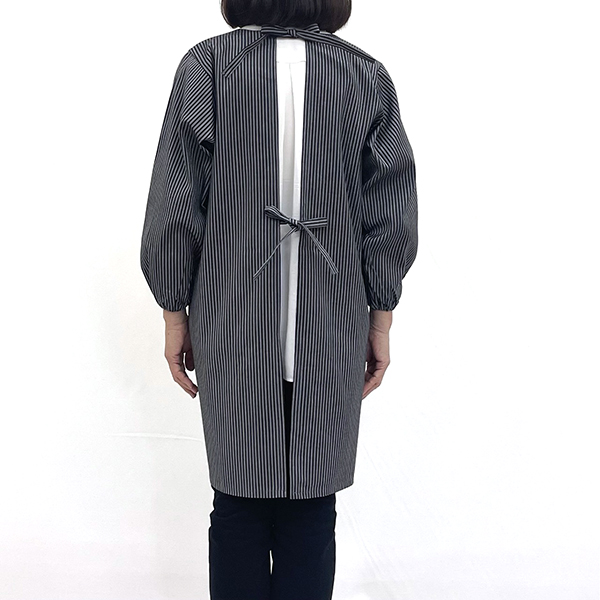 アクリル混の生地で作ったシワになりにくい、後ろ紐の割烹着です。