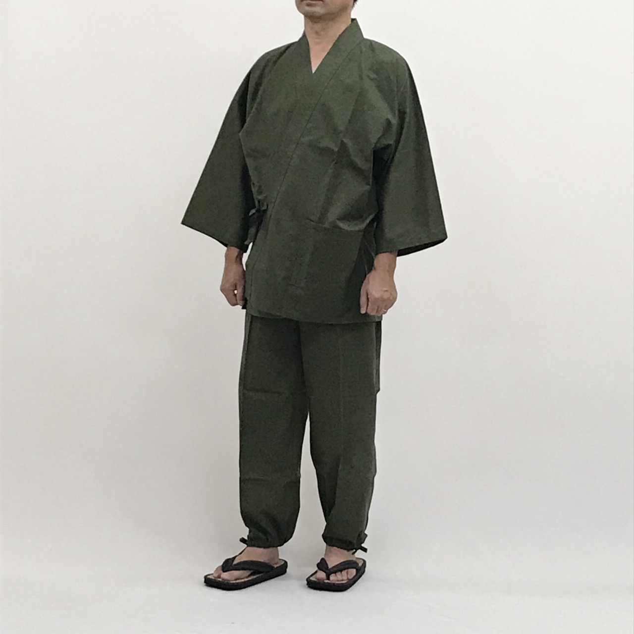 【久留米織紬作務衣】もえぎ色(緑) <S・M・L・LL>