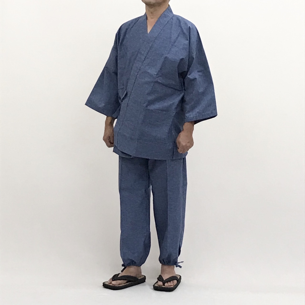 【久留米織紬作務衣】そら色(水色) <S・M・L・LL>