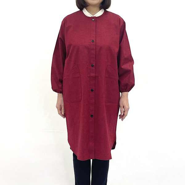 【紬スモック】あずき色(えんじ)/フリーサイズ(M~L)
