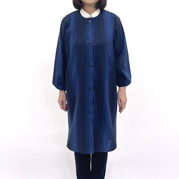 【ストライプロングスモック】グラデーションブルー/フリーサイズ