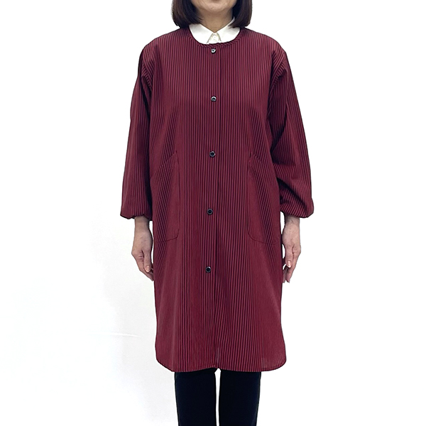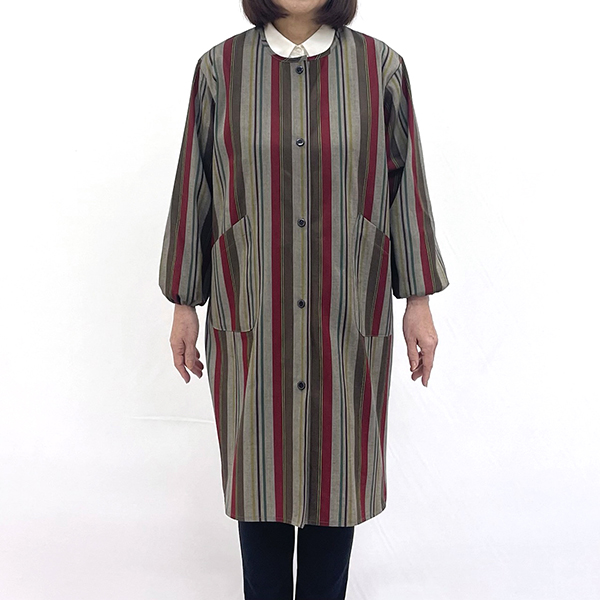 【ストライプロングスモック】細縞赤/フリーサイズ