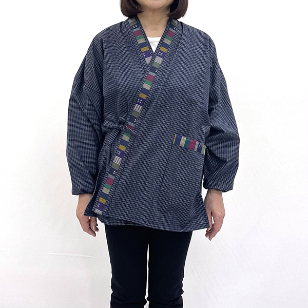 【紬ロングスモック】あい色(紺)/フリーサイズ